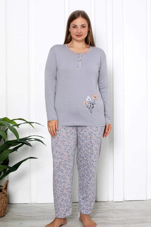 Royalfashion Pamut női 2 részes virágmintás pizsama PLUS SIZE