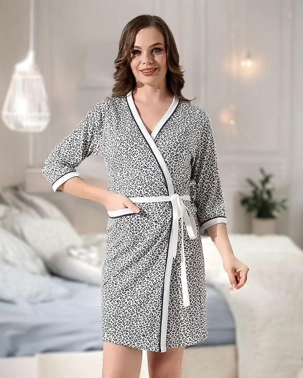 Royalfashion Női pamut fürdőköpeny párduc mintával