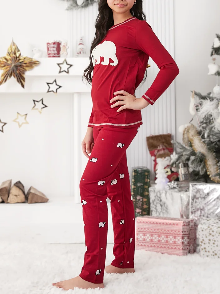 Royalfashion karácsonyi pamut gyermekpizsama sarki medvével
