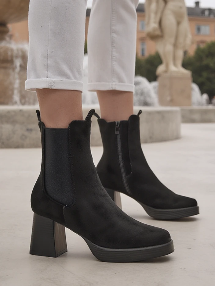 • Stílusos női öko-suede bokacsizmák - tökéletes megoldás hűvösebb napokra. A cipők cipzáras záródással rendelkeznek, és öko-bőr talpbetéttel készültek. Modell dekoratív blokk sarkú és négyzet alakú orrú.