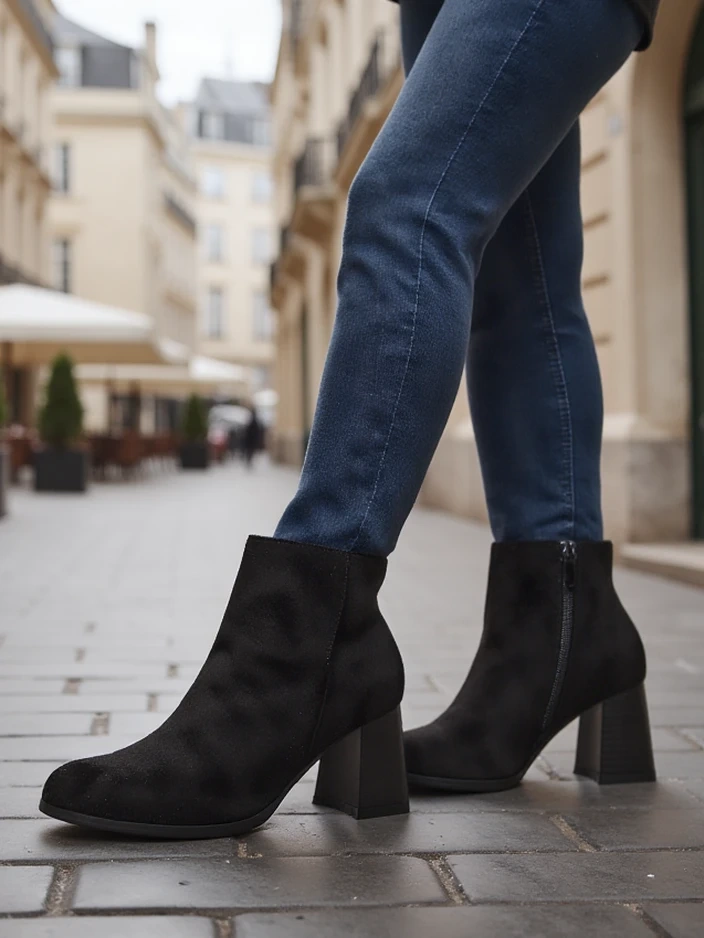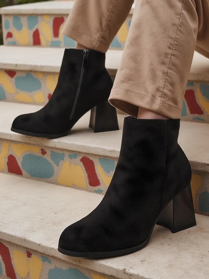 - Csodálatos női bokacsizma alacsony sarokkal, öko suedebőrből készült. A modell szövet talpbetéttel rendelkezik és cipzárral záródik. Tökéletes őszi öltözékekhez!