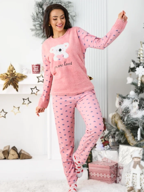- Női 2 részes pizsama szett hosszú ujjakkal és hosszú nadrággal, bolyhos anyagból készült. A modell egy nyomtatott mintával díszített. Tökéletes otthoni kényelmes estékre! MEGJEGYZÉS: Mérés pontosság (+/-) 1 cm.