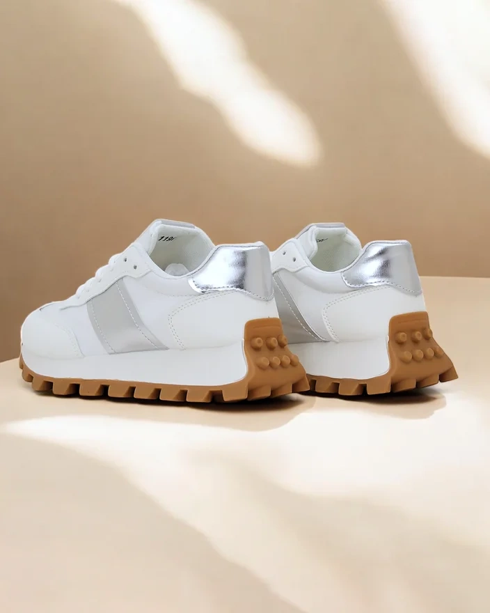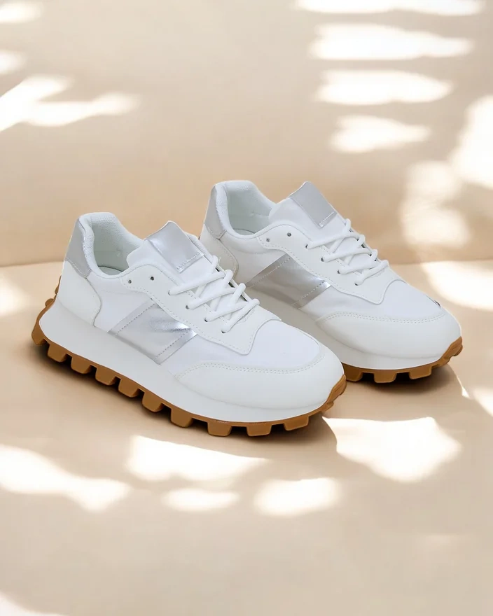 - Női lapos talpú sportcipők, fényes öko bőrből, ökologikus nubukból és textil elemekből készült kombinációval, a stílus és a kényelem tökéletes harmóniája. A modell szövet talpbetéttel rendelkezik. Ideális aktív egyének számára!