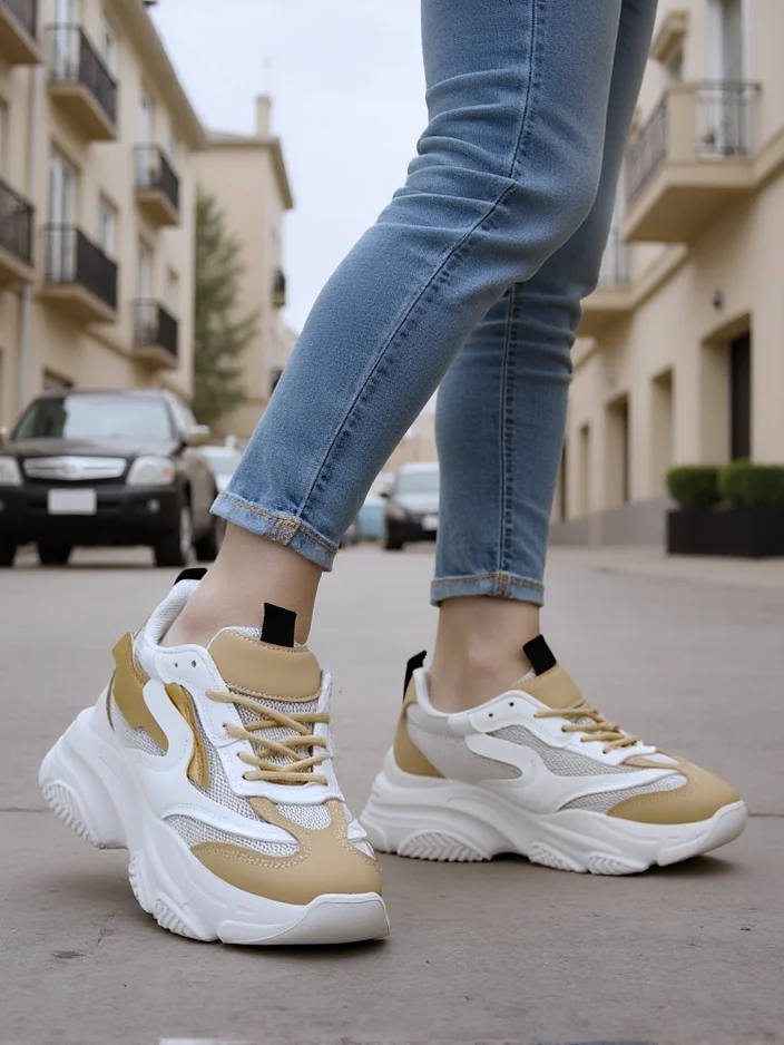 - Női sportcipők sneaker stílusban platformon. Öko bőrből és szövetből készült. Kiváló kiegészítő a mindennapi utcai öltözékeidhez!