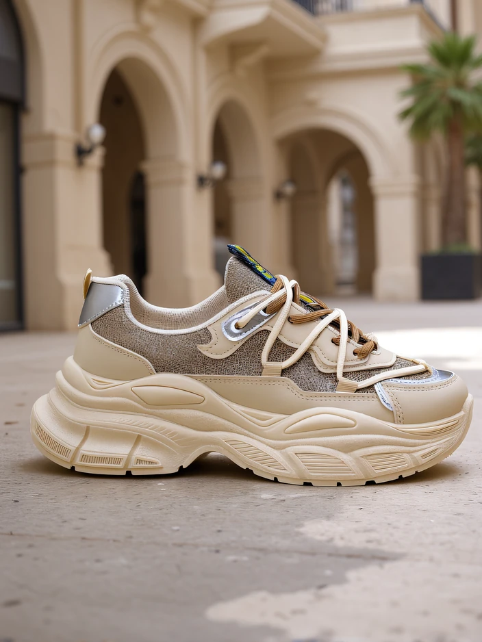 - Női edzőcipők vastag talpon. Öko-bőrből készült csillogó betétekkel. Szövet talpbetét. Kiváló kiegészítő a mindennapi, laza öltözködéshez!