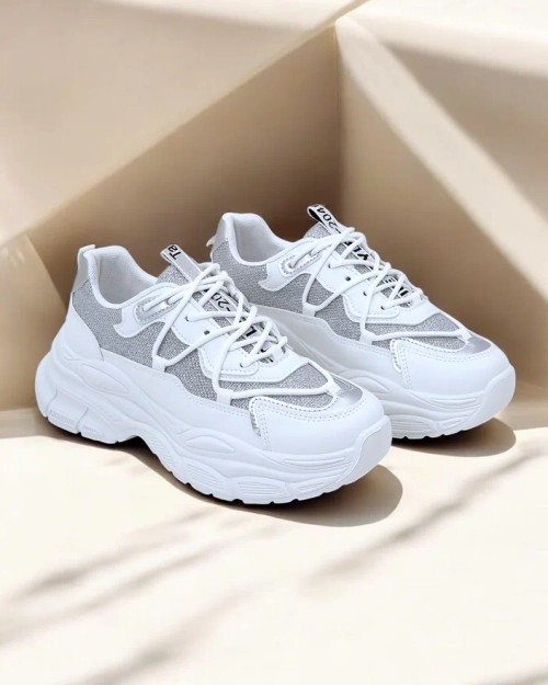 • Női edzőcipők vastag talpon. Öko-bőrből készült csillogó betétekkel. Szövet talpbetét. Kiváló kiegészítő a mindennapi, laza öltözködéshez!