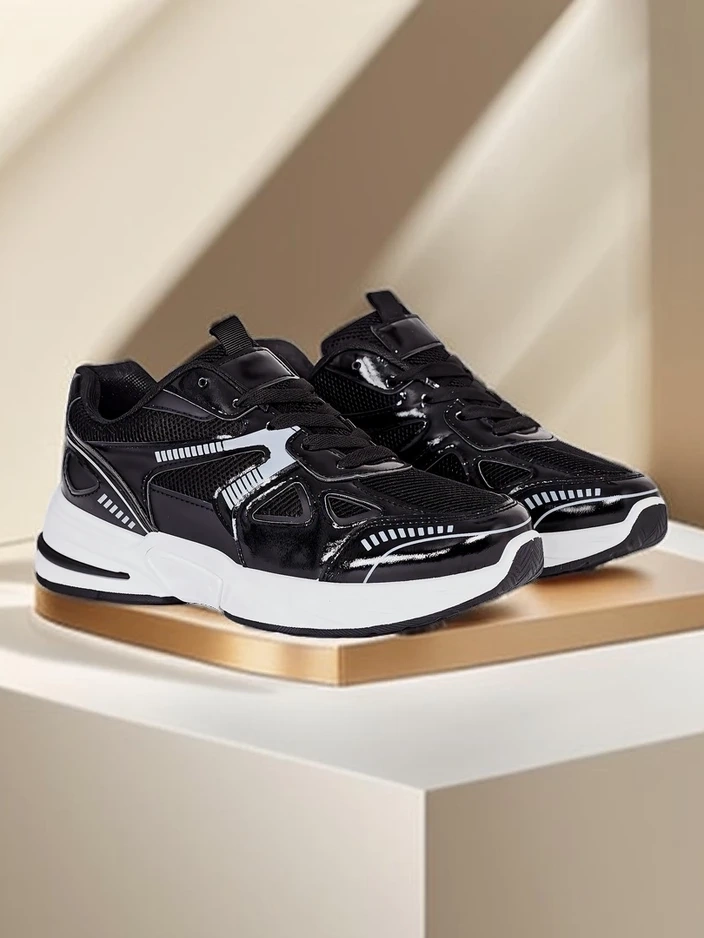 • Női sportcipők sneaker stílusban, lapos talppal. Lakk műbőrből készült, szövetbetétekkel. Szövet bélés. Remek kiegészítője a mindennapi alkalmi öltözékeknek!