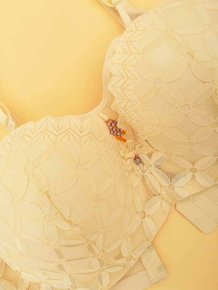 • Elegáns női párnázott melltartó kellemes, puha anyagból. A modell dekoratív csipkével és levehető, állítható pántokkal rendelkezik, hátsó kapcsos záródással. MEGJEGYZÉS: a mérés pontosága (+/-) 1 cm.