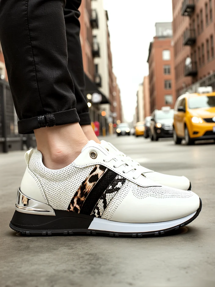 - Mega divatos női sportcipők laza stílusban. A cipők felső része öko-bőrborítású, nyomtatott betétekkel díszítve. A belső rész textil anyaggal van bélelve. Ideális alapja sok mindennapi megjelenésnek!