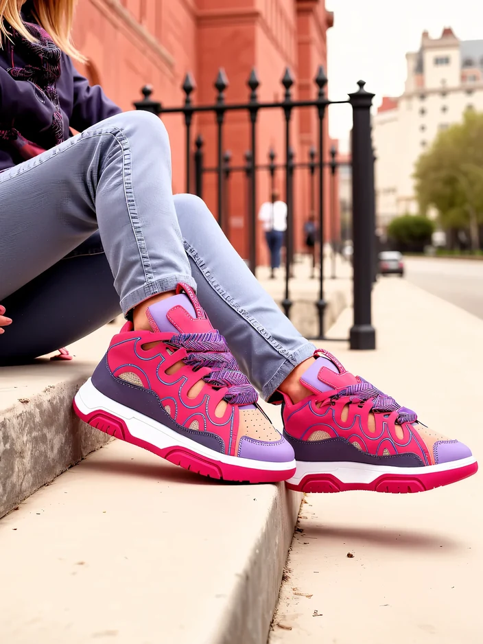 - Divatos női sportcipők vastag talppal, környezetbarát bőrből és környezetbarát nubukból készítve. Belsejében szövet talpbetét található, a modell fűzős. Nagyszerű kiegészítők lesznek a mindennapi öltözetekhez.