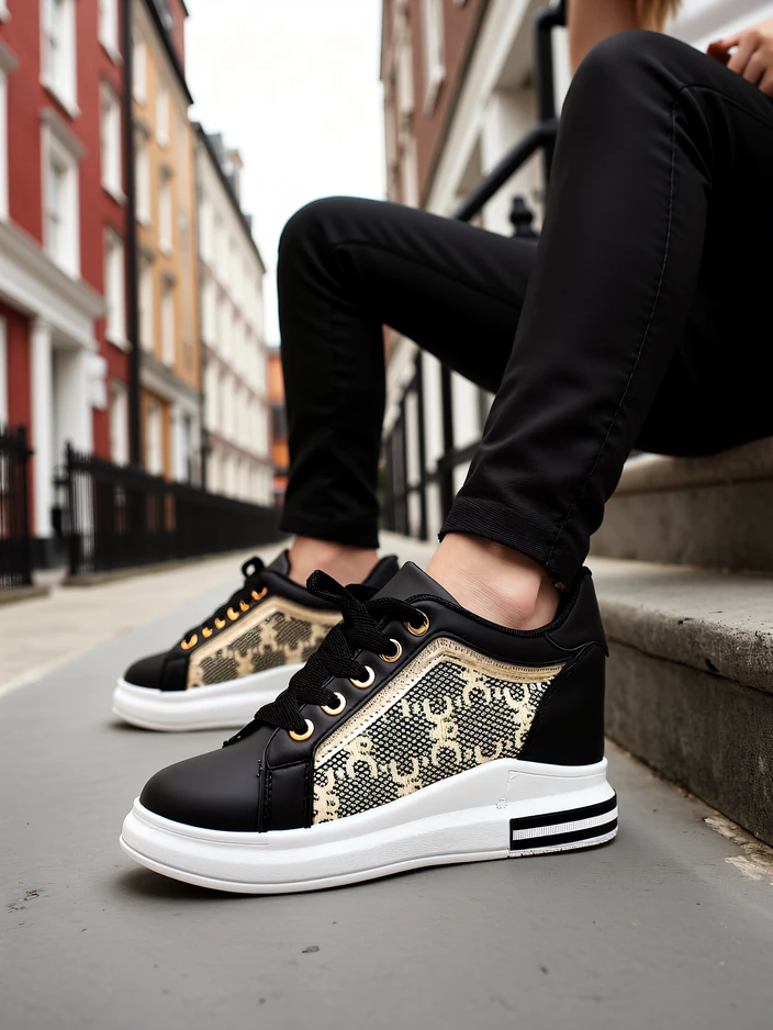 - Kényelmes női sportcipők rejtett sarokkal, öko bőrből és nyomott textilből készült. Modell fűzős, textil betéttel. A rugalmas felsőrész finoman alkalmazkodik a lábhoz. Egy szuper divatos kiegészítő!