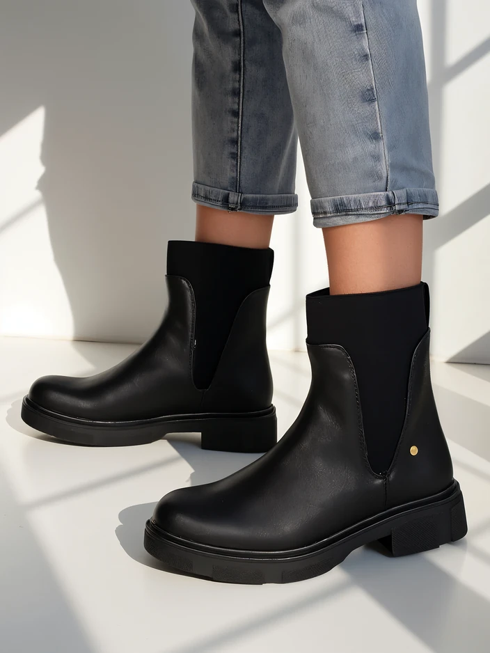 - Csodálatos női bokacsizma lapos sarkú, öko bőrből készült. A belseje szövet talpból készült. Az oldalsó rugalmas betétek tökéletes illeszkedést biztosítanak!