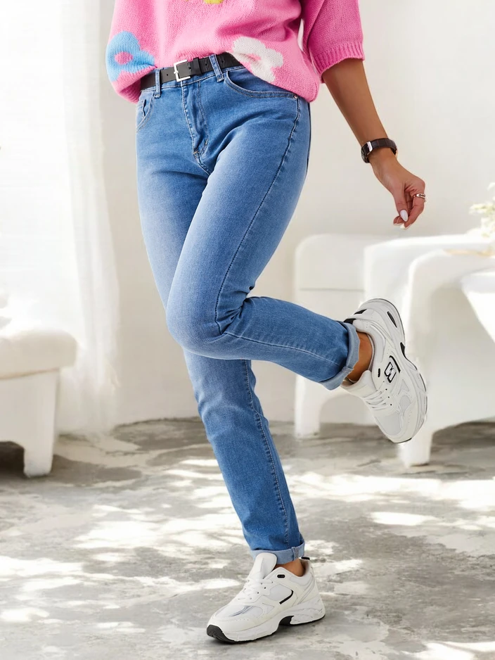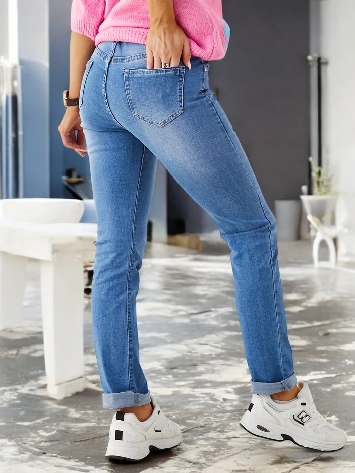 - Női egyenes farmernadrág pamut anyagból. Közepes magasított modell, gombbal és cipzárral záródik. Két pár zseb - hátul és elöl. Népszerű választás idén!
