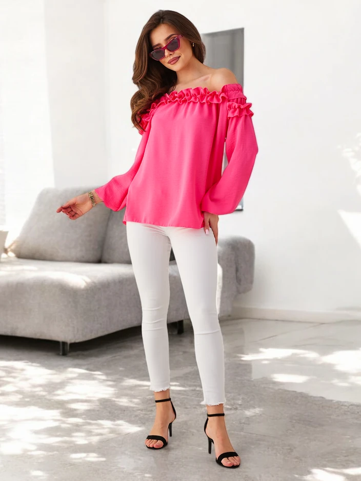 Royalfashion Női, vállra csúszó blúz fodrokkal
