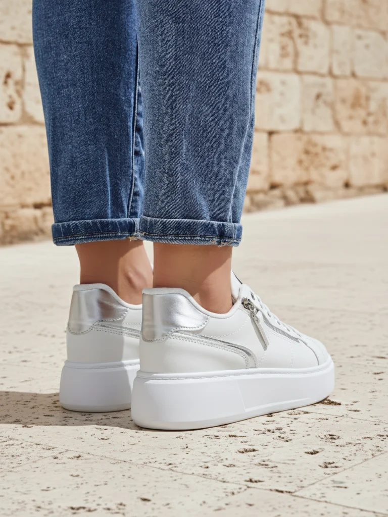 - Női sportcipők lapos talppal, öko bőrből készültek. A modell textil betéttel és vastagabb talppal rendelkezik. Viseld bő nadrággal és inggel!