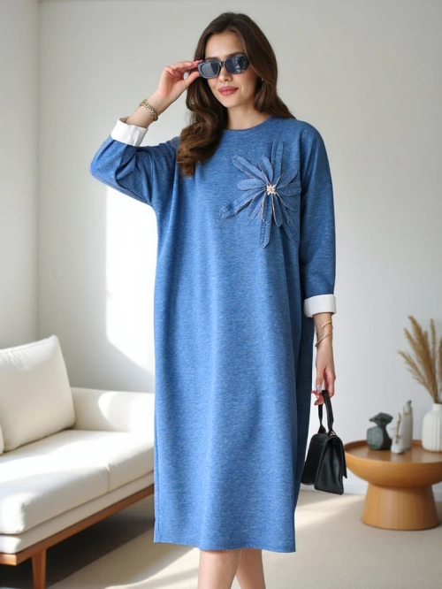 - Over-sized női midi ruha, hosszú ujjú és kerek nyakkivágású. Ezen kívül egy dekoratív virág. Elengedhetetlen ebben a szezonban! MEGJEGYZÉS: Mérési pontosság (+/-) 1 cm. Méretek laposan mérve.
