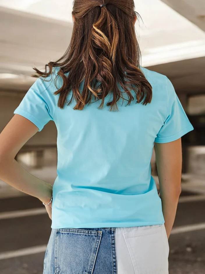 - felirattal. Eredeti női blúz kerek nyakkivágással, puha és kellemes tapintású anyagból készült. Az egész finom felirattal díszített, és a rövid ujj könnyed hatást ad. Tökéletes választás divatos és stílusos összeállításokhoz!
