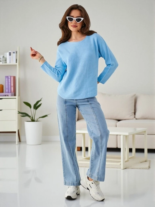 Damski sweterek wykonany z lekkiej, wiskozowej tkaniny. Posiada długie rękawy i okrągły dekolt, zapewniając komfort i elegancję w codziennych stylizacjach. Dostępny w różnych kolorach, pozwala na łatwe dopasowanie do każdej garderoby!