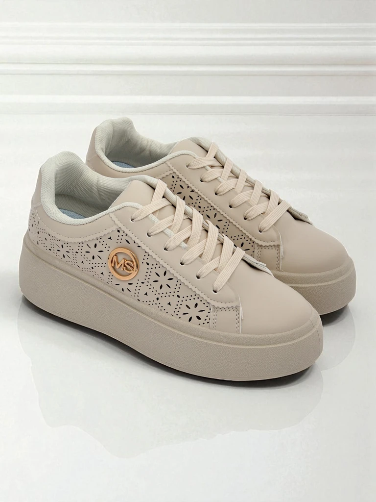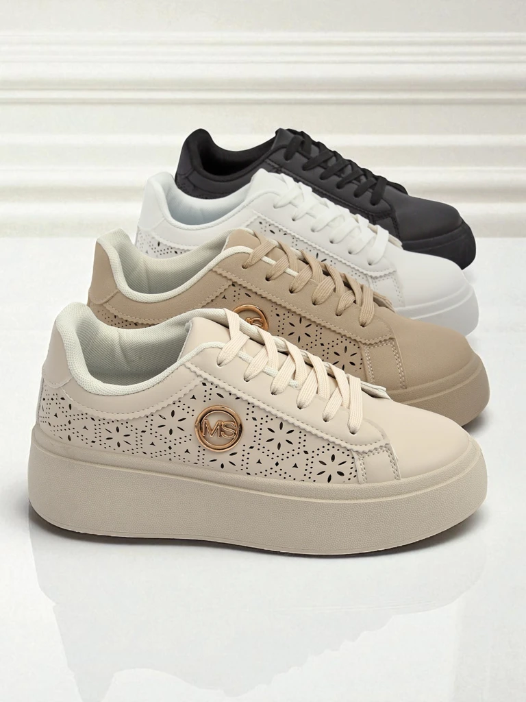 Női, áttört mintás sneakers cipők öko bőrből és textil betéttel, platformon, amelyek a kényelmet a divatos stílussal ötvözik. Ideálisak a mindennapokra, könnyedséget és kényelmet biztosítanak, a finom design pedig eleganciát kölcsönöz minden összeállításn