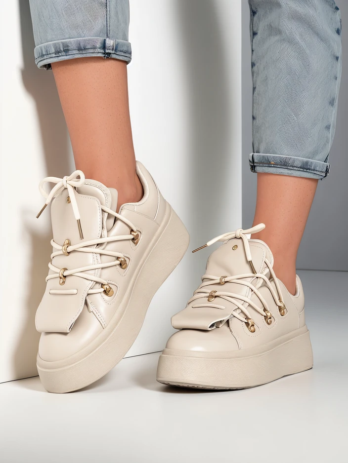 - Sport női sneakers vastag talppal. Fűzős felsőrész környezetbarát bőrből. A belső rész kellemes anyagból készült. A modell jellemzője egy díszes nyelv. Tökéletes mindennapi használatra!
