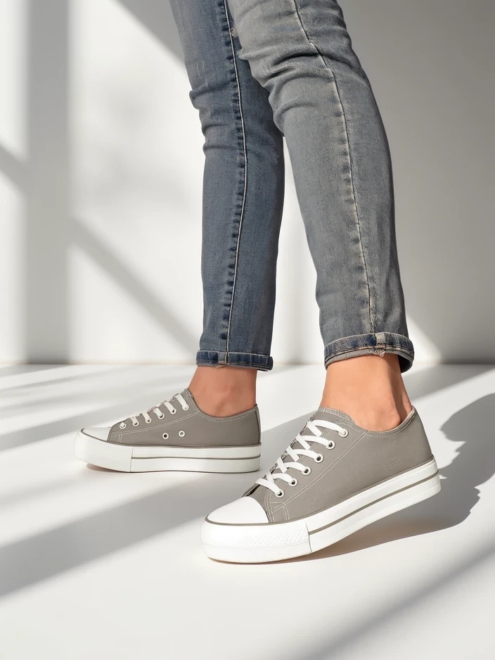 - Női sportcipők szövetanyagból. Díszes fűzővel ellátott felsőrész. Klasszikus gumitalp. Ezek a cipők tökéletesek a mindennapi viselethez!