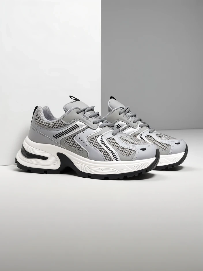 Aurelia Luna to damskie sneakersy marki Royalfashion, stworzone z myślą o aktywnych kobietach ceniących modę i wygodę. Ich cholewka wykonana jest z wysokiej jakości skóry ekologicznej, elastycznej tkaniny oraz przewiewnej siateczki, co zapewnia znakomitą wentylację i zapobiega nadmiernemu poceniu się stóp nawet podczas całodziennych spacerów. Materiały te są wybierane pod kątem trwałości oraz komfortu użytkowania, a użyty proces produkcji dba o precyzyjne wykończenie każdego detalu.Wkładka oraz wyściółka z miękkiej tkaniny gwarantują doskonałe dopasowanie oraz wygodę na każdym kroku, a płaski obcas i profilowana, amortyzująca podeszwa o wysokości 5 cm gwarantują idealną równowagę między wygodą a nowoczesnym designem. Buty są lekkie (waga z opakowaniem ok. 0,4 kg), co czyni je idealnym wyborem na co dzień.Kluczowe korzyści tych sneakersów to wygoda użytkowania oraz uniwersalny styl. Minimalistyczna kolorystyka – gołębi szary z nutą ecru – sprawia, że obuwie łatwo dopasować zarówno do sportowego, jak i casualowego looku.1. Połącz z legginsami i długim oversize’owym swetrem, by stworzyć luźny, casualowy zestaw na spacer lub zakupy.2. Załóż do jeansów typu mom fit i klasycznego T-shirtu – uzyskasz stylizację idealną do pracy lub na uczelnię.3. Sneakersy Aurelia Luna świetnie sprawdzą się także w zestawieniu z letnią sukienką midi i jeansową kurtką, dodając stylizacji sportowego sznytu. Aby zachować świeżość i ładny wygląd butów, czyść je regularnie wilgotną szmatką z dodatkiem łagodnego środka czyszczącego. Unikaj moczenia i suszenia na słońcu. Po sezonie schowaj je w suchym, przewiewnym miejscu, najlepiej w oryginalnym opakowaniu. Sneakersy na masywnej podeszwie to zdecydowany hit ostatnich sezonów i doskonale wpisują się w trend athleisure. Uniwersalne odcienie szarości i ecru pozwolą Ci z łatwością komponować je z różnymi stylizacjami, zgodnie z aktualnymi trendami mody miejskiej.