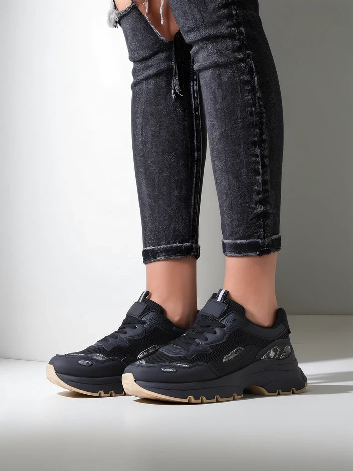 - Stílusos női sportcipők, amelyek kombinálják a kényelmet a divatos dizájnnal. A modell öko-bőr és textil kombinációjából készült, valamint textil béléssel rendelkezik. Tökéletes mindennapi viseletre, kényelmet és könnyedséget biztosít, sok laza stílushoz