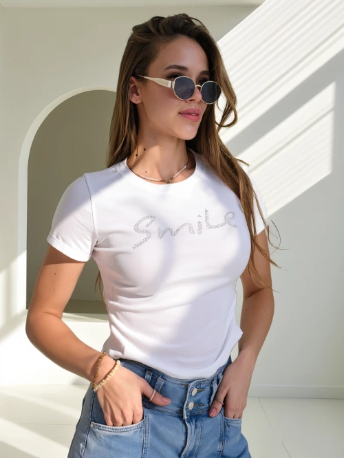 • Eredeti női blúz kerek nyakkal, puha és kellemes tapintású anyagból készült. Az egész darab finom nyomtatással díszített, a rövid ujj pedig könnyedséget ad. Kiváló választás divatos és stílusos öltözékek létrehozásához!