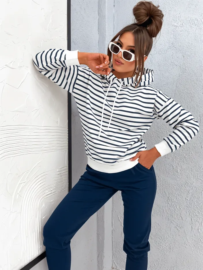- Női melegítő szett kellemes anyagból. Kapucnis, fej fölé húzható pulóver. A derékpánt elasztikus, és 2 zsebet tartalmaz. Ideális szett sétához! MEGJEGYZÉS: Méretpontosság (+/-) 1 cm.