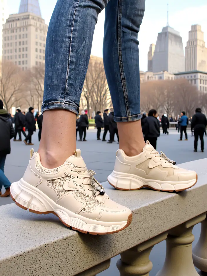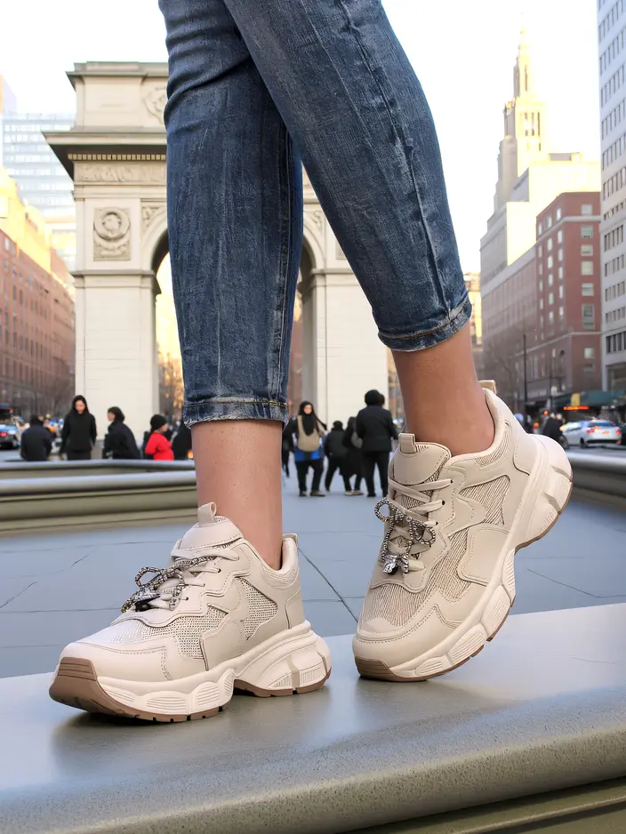 - Női sportcipők környezetbarát bőrből és hálóból. Vastagabb talpú modell. Fűzős felsőrész. Tökéletesen párosíthatók a hétköznapi öltözetekkel! Levehető lánccal díszítve.