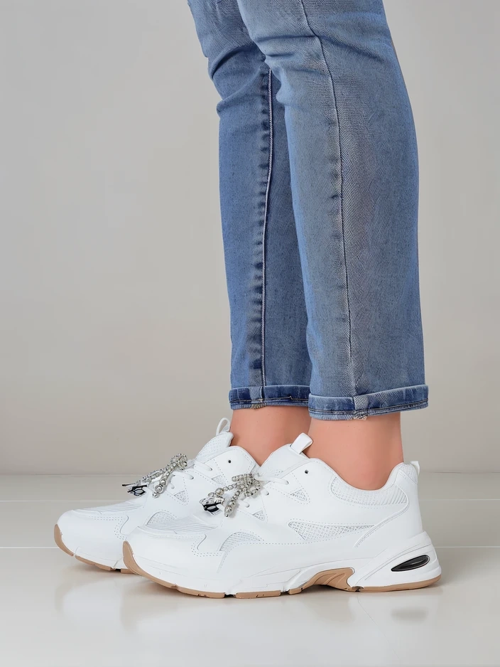 - Női sportcipők öko-bőrből és hálós anyagból. Vastagabb talpú modell. Fűzős felsőrész. Remekül passzolnak a mindennapi stílusokhoz! Levehető lánccal díszítve.