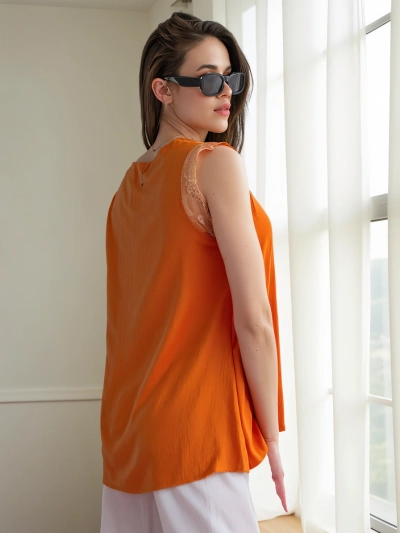 - Elegáns ujjatlan női blúz, amely kiemeli a női finomságot. A puha anyag körbeöleli a sziluettet, miközben a V-kivágás és a csipke kifinomult érintést kölcsönöz. Tökéletes mindennapi viseletre, mind pedig különleges alkalmakra!