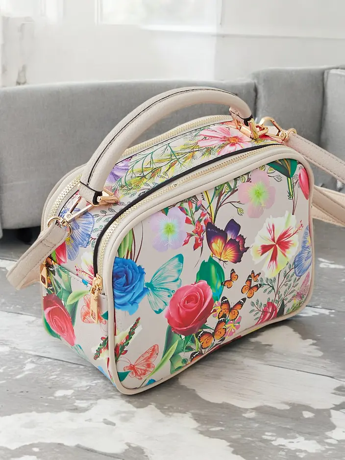 - Virágmintás női kézitáska, cipzáros, öko-bőrből készült. A modell 2 rekesszel és egy külső zsebbel rendelkezik. Ezenkívül levehető, állítható pánttal van ellátva. Tökéletes a mindennapi használatra!