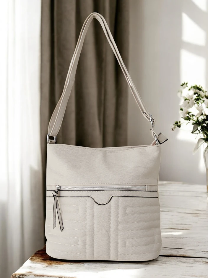 • Női kézitáska cipzárral, ökobőrből készült. A modell rendelkezik 1 rekesszel, 3 belső zsebbel és 2 külső zsebbel. Ezenkívül állítható hevederrel is rendelkezik. Tökéletes napi használatra!