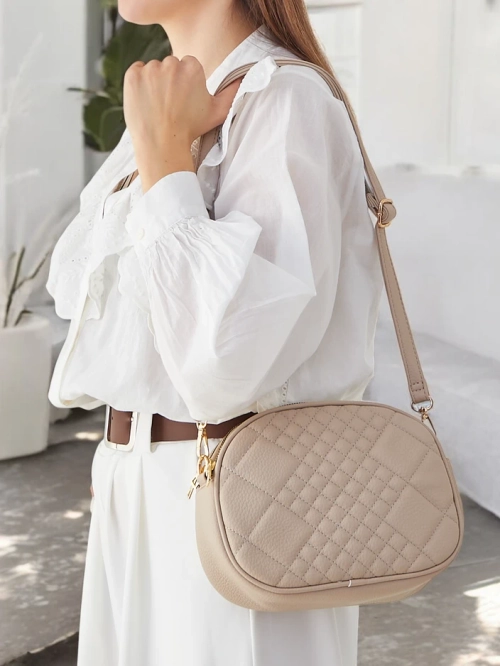 - Női ovális táska cipzárral, öko-bőrből készült. A modell 3 rekesszel és egy külső zsebbel rendelkezik. Ezenkívül levehető, állítható pánt is tartozik hozzá. Tökéletes mindennapi használatra!