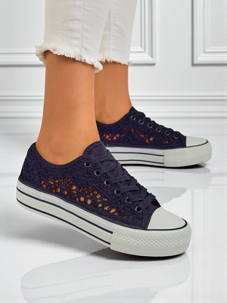 Aureliana sötétkék áttört szövet női lapos talpú tornacipő