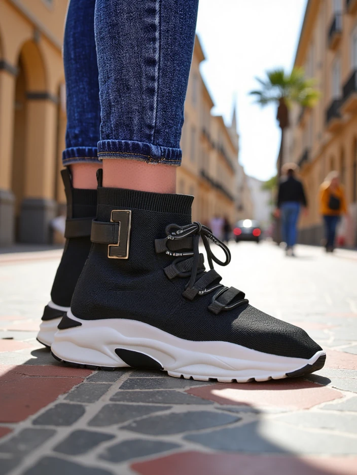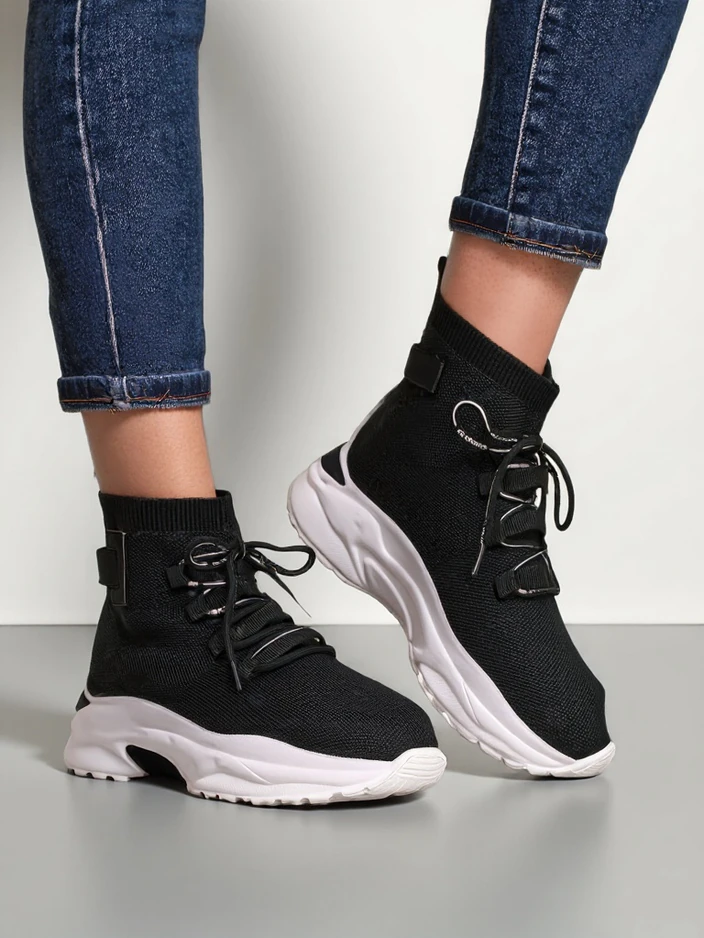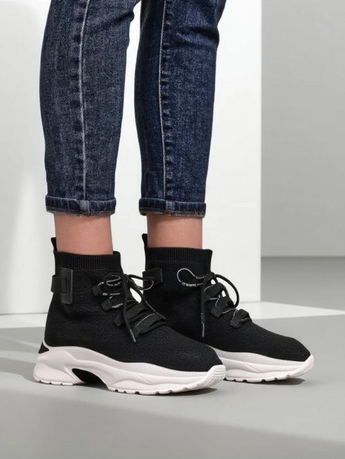 • Női cipők vastag talppal - a stílus és kényelem tökéletes kombinációja. Slip-on lábbeli szövetből. Jó választás mindennapi használatra!
