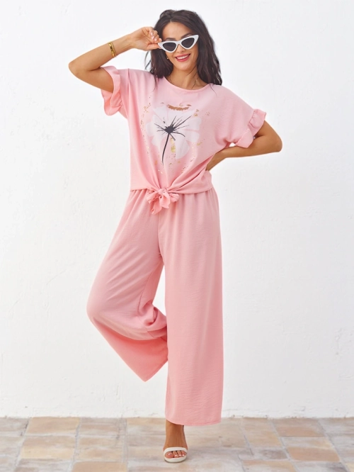 Royalfashion Női hétköznapi szett rövidujjú blúzzal és bő nadrággal