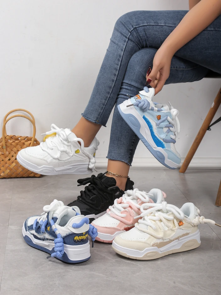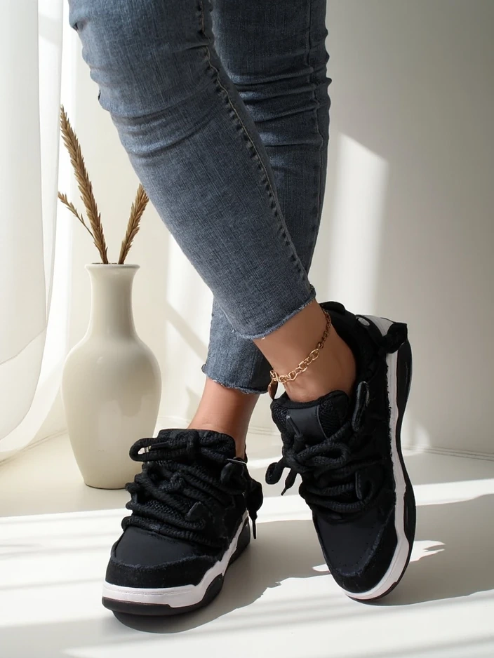 • Eredeti női cipők lapos talppal - tökéletes stílus és kényelem kombinációja. A lábbeli szövet és öko-bőr kombinációjából készült. Fűzős modell, szövet talpbetéttel. Ideális aktív egyének számára!