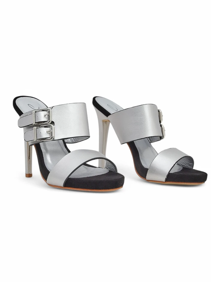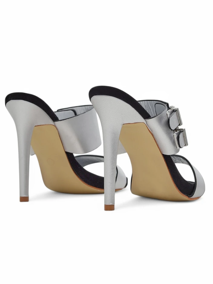 Aletheia ezüst tűsarkú szandál 12cm ökológiai bőr pántos