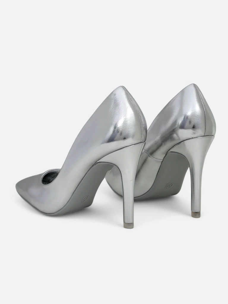 A cipőket megkülönböztető jellemzője a különleges design, a jellegzetes, 10,5 cm magas tűsarokkal, amely minden stílushoz eleganciát kölcsönöz. Az univerzális ezüst színnek köszönhetően ezek a cipők könnyen kombinálhatók különféle ruhákkal.