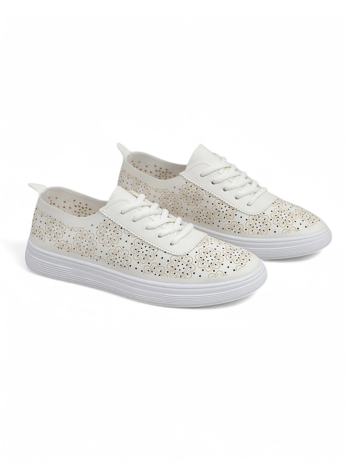• Eredeti fűzős női sportcipők nyomattal lapos talpon - a stílus és a kényelem tökéletes kombinációja. A lábbelik öko-bőrből készülnek. Fűzős modell, szövet talpbetéttel. Ideális aktív egyének számára!