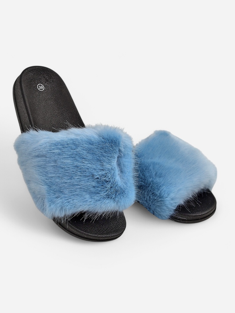 • Kedves női papucs gumiból. A modell dekoratív szőrrel rendelkezik a hevederen. Számos eredeti stílushoz alkalmasak. MEGJEGYZÉS: a keskeny láb anatómiával rendelkező emberek számára előnyös modell