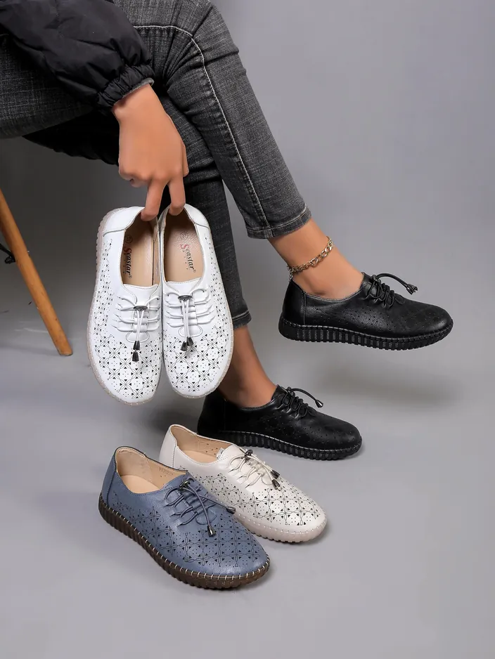 - Női perforált cipők vastag talpon. A slip-on felsőrész öko-bőrből készült, a talpbetét öko-bőrből készült. Ideális alap mindennapi öltözékekhez!