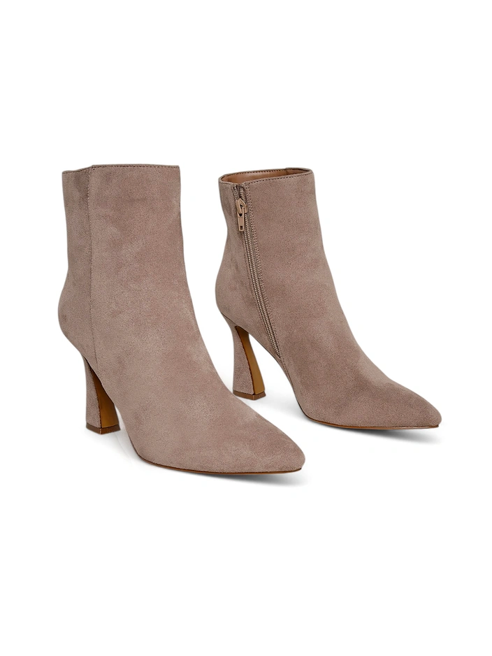 - Stílusos női öko-suede bokacsizma - a tökéletes megoldás a hűvösebb napokra. A modellen cipzáras záródás található, és öko-bőr talpbetéttel rendelkezik. A modell stiletto sarokkal és hegyes orral rendelkezik.