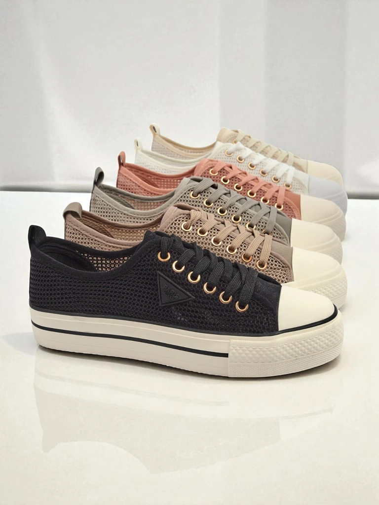 Ezeknek a tornacipőknek a felsőrésze kiváló minőségű mesh anyagból készült, amely optimális szellőzést biztosít a lábnak, még a legmelegebb nyári napokon is. A textil talpbetét finom és puha, ami egész napos kényelmet garantál. A cipők modern, az anyagot erősítő technológiával készültek, ami biztosítja a tartósságukat még gyakori használat esetén is.