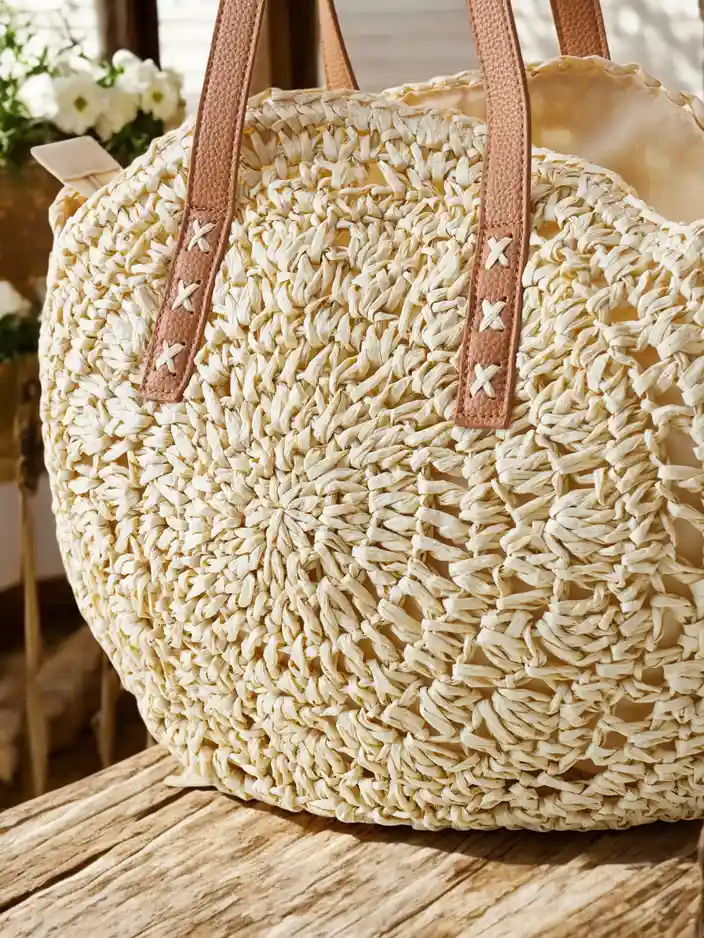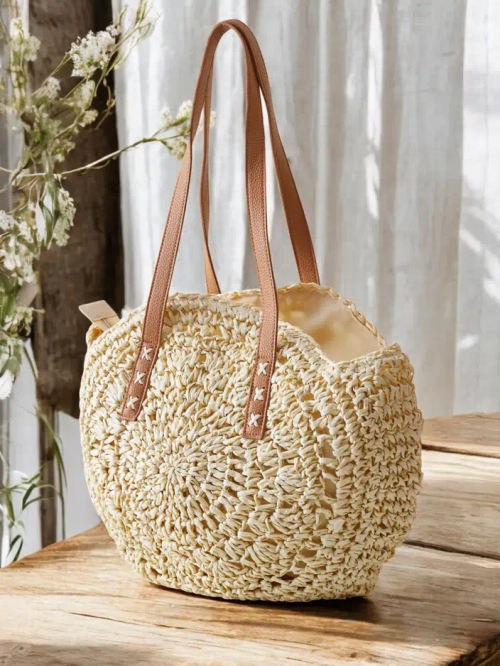 Royalfashion Nagy ovális szalma kézitáska nőknek