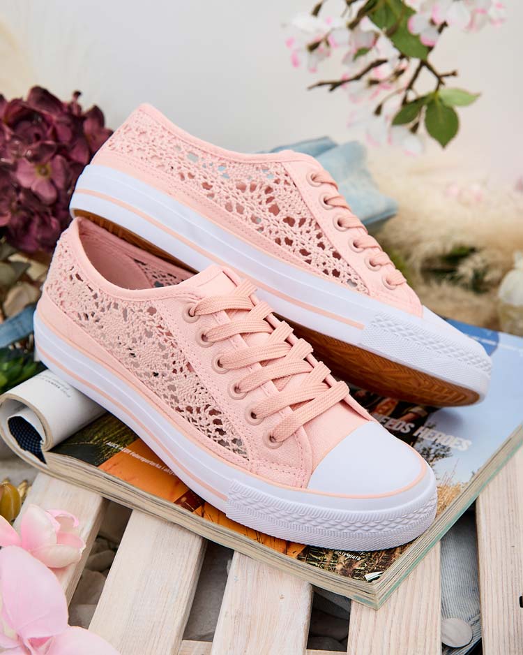 Rózsaszín Kalipso női szövet tornacipő – áttört, lapos talpú sneakerek