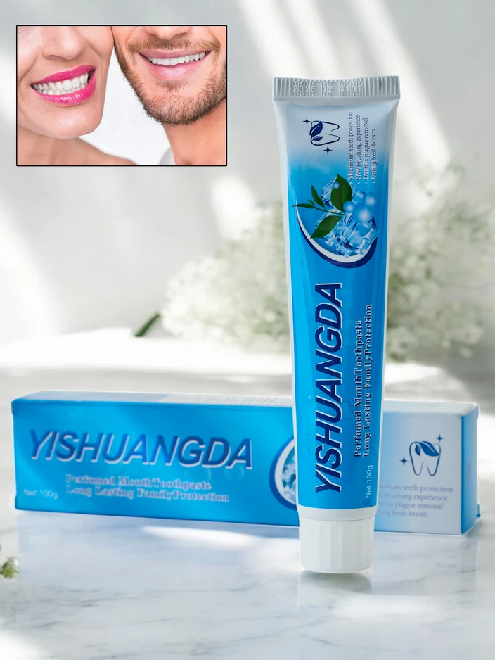 - A mentás fogkrém hatékonyan tisztítja a fogakat, hosszú távú friss leheletet biztosít, és véd a lyukaktól, tisztaságérzetet hagyva.