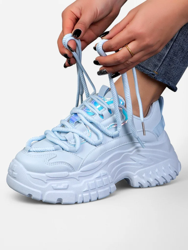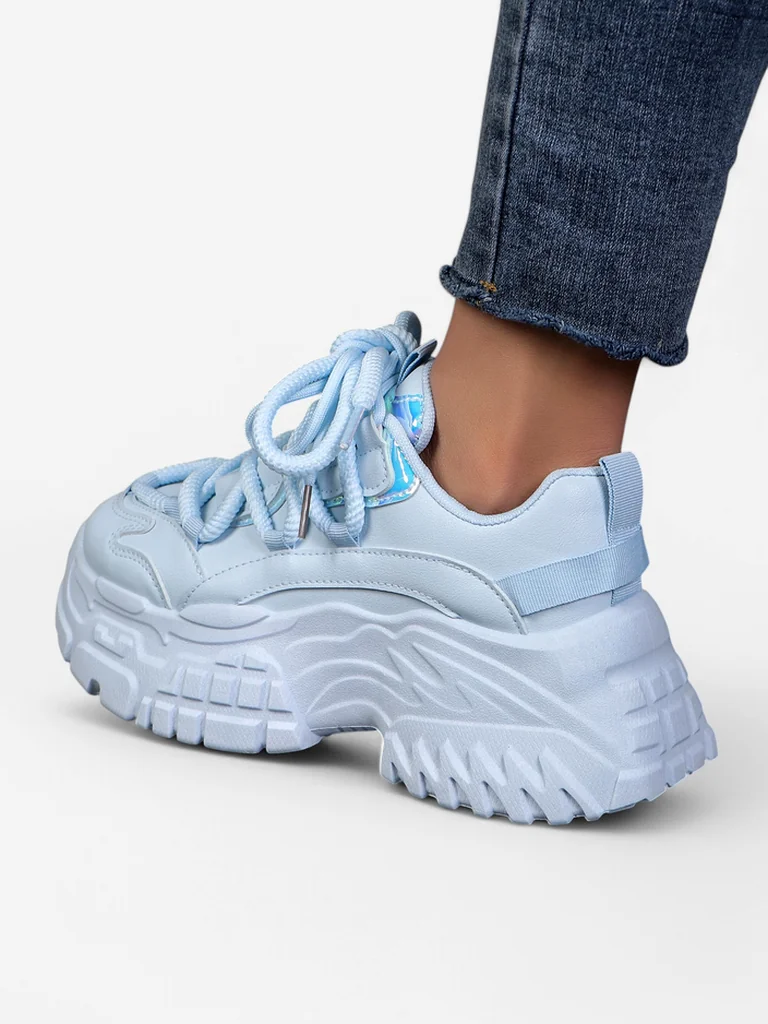 Damskie buty sportowe typu sneakersy na grubszej podeszwie. Model wykonany ze skóry ekologicznej oraz tkaninowej wkładki. Super dodatek do twoich codziennych outfitów w stylu casual!